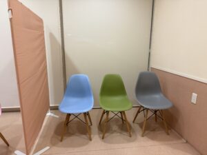 当院では、猫ちゃんができるだけ落ち着いて過ごせるよう、犬の待合スペースと仕切りを設けた空間を整えました。